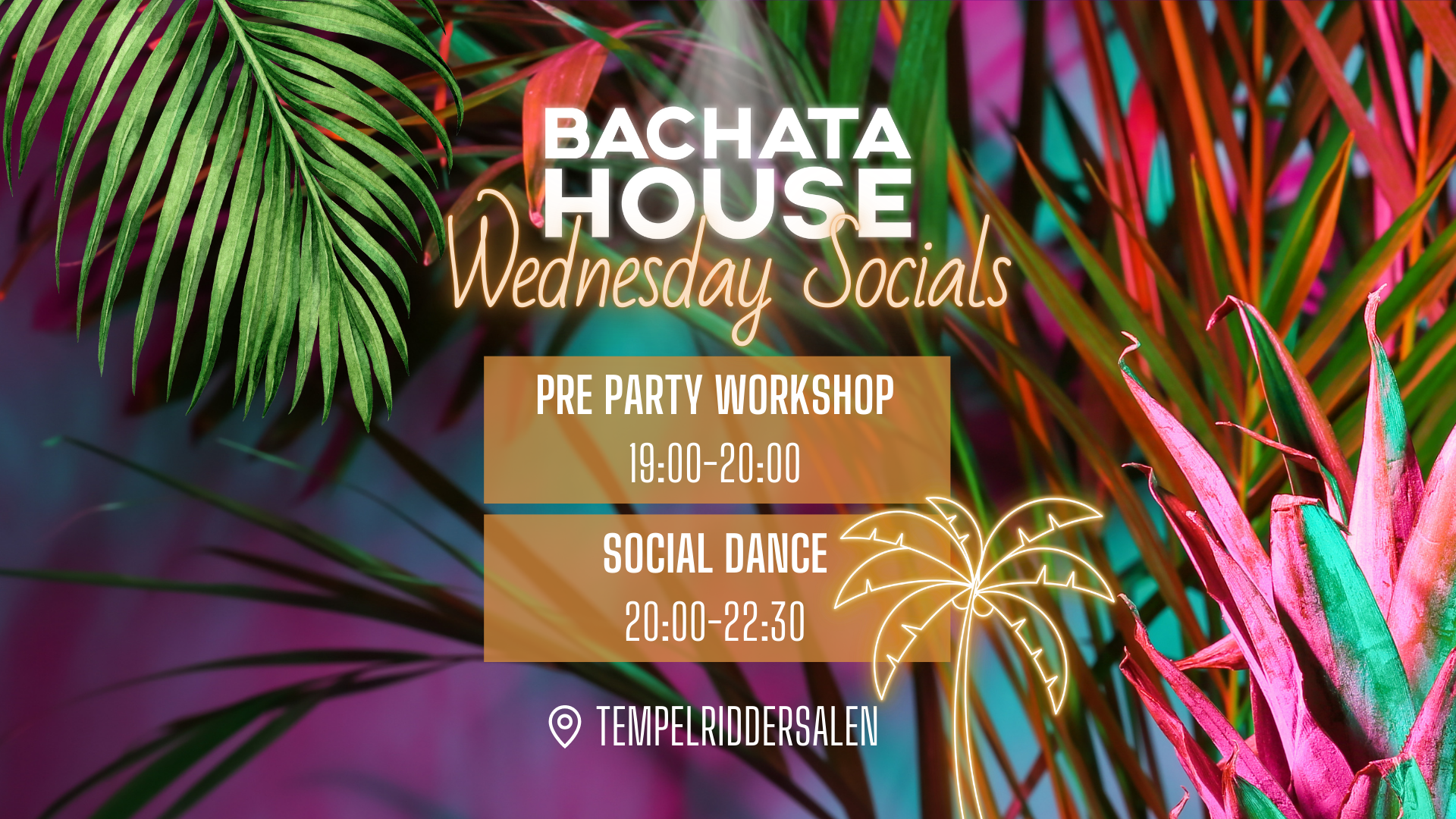 Every Wednesday, we open our doors in Tempelriddersalen for a nice Wednesday social, starting with pre-party class class with a selection of Copenhagens finest bachata instructors to warm us up🥳